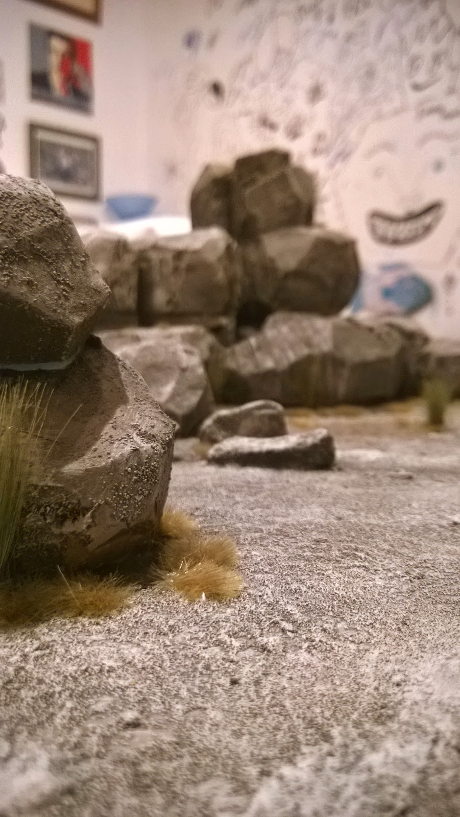 Stay tuned for the big reveal later this week. Until you see all three tiles together it's hard to see this as point on an ancient trail. I'm pretty sure it's going to work and has a suitably dangerously gritty but humourous vibe. The eagle-eyed among you may have noticed the rickety bridge under construction in the background. This is the bridge that the Orcs control for their personal gain. They Guarantee "safe" passage at a cost. The board is two nights away from completion...
